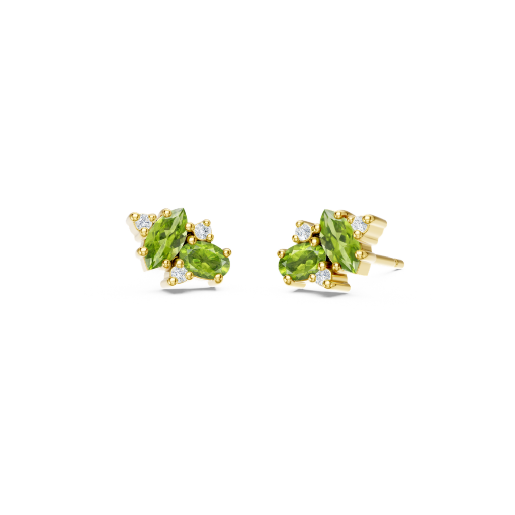 Deze oorbellen zijn korte stekertjes bezet met een diamant en groene peridoot.