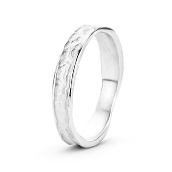 Deze ring heeft een grillige vorm en een matte afwerking.