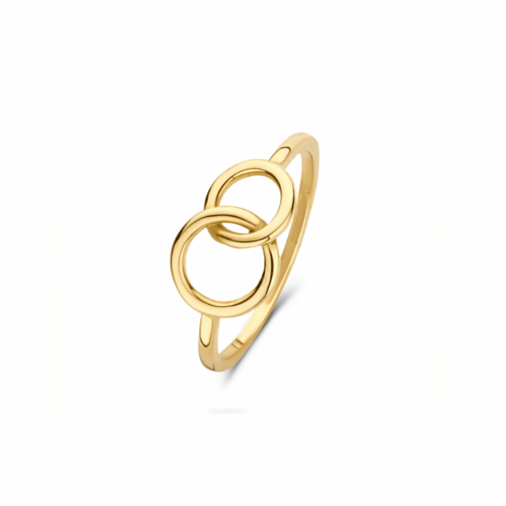 De ring heeft als motief 2 open cirkels die met elkaar verbonden zijn.