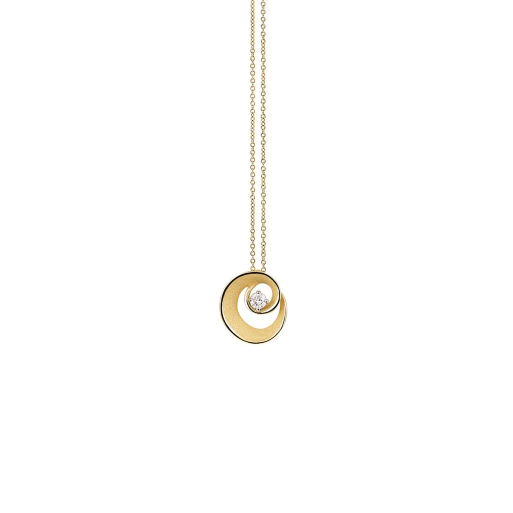 Deze halsketting met hanger is gemaakt in 18 karaat geel goud.