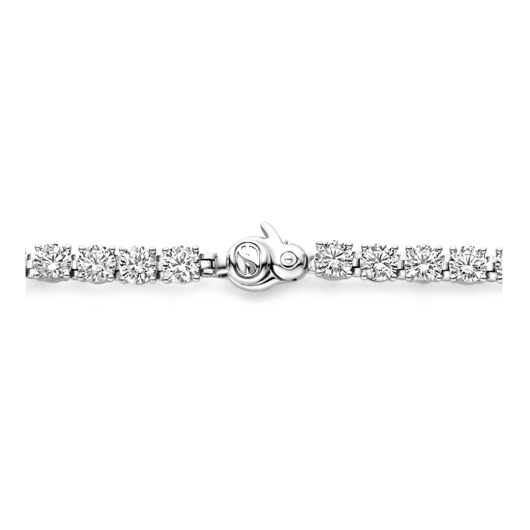 De armband is een aaneenschakeling van witte zirconia.