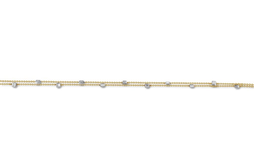 In elke armband zitten witgouden vierkante blokjes (2,2 mm) verwerkt.