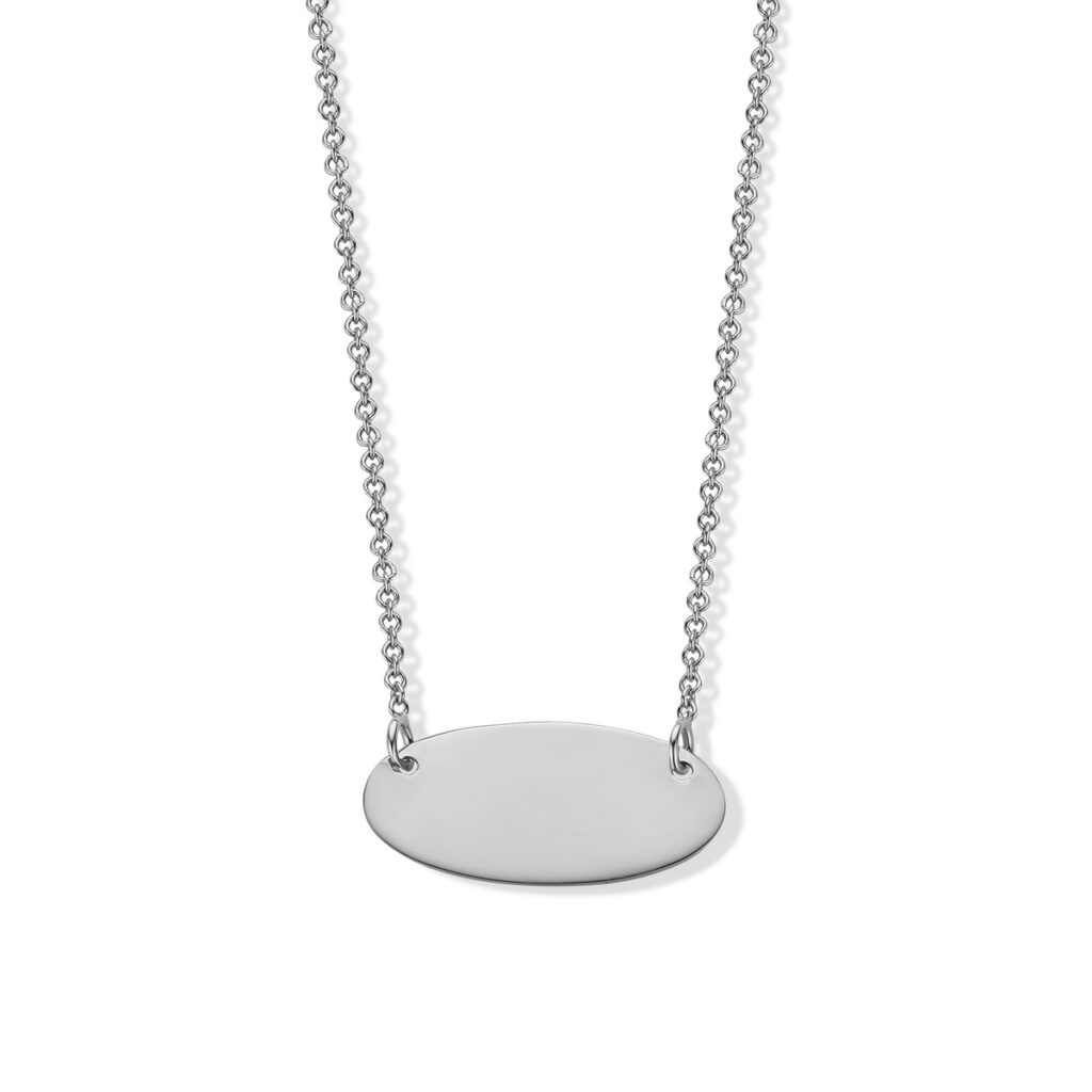 De hanger van de ketting is een ovaal plaatje dat kan gegraveerd worden.