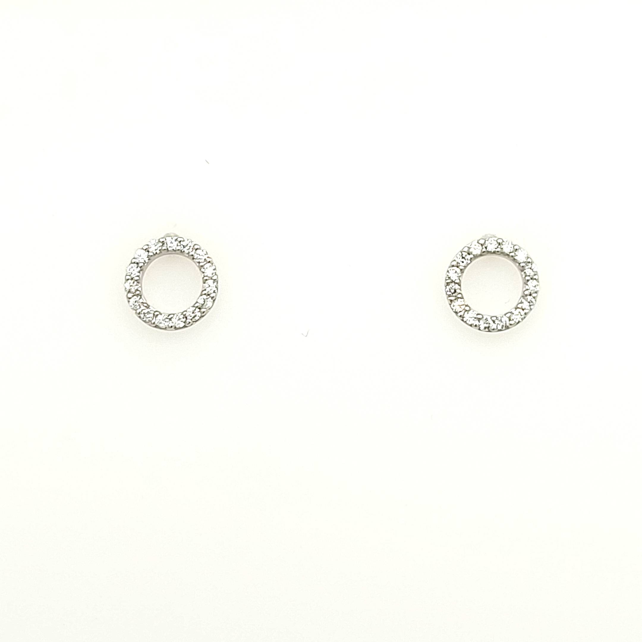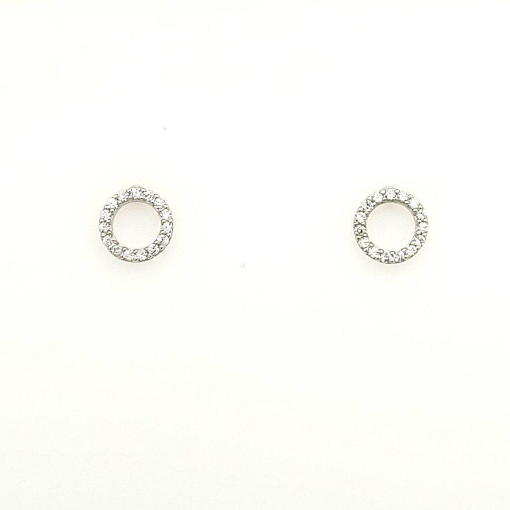 De oorbel is een cirkeltje bezet met zirconia dat binnenin open is.