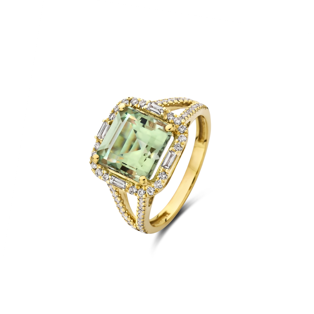 | material | 18kt goud, Prasioliet, Diamant (natuurlijk en onbehandeld), Diamant (natuurlijk en onbehandeld) |