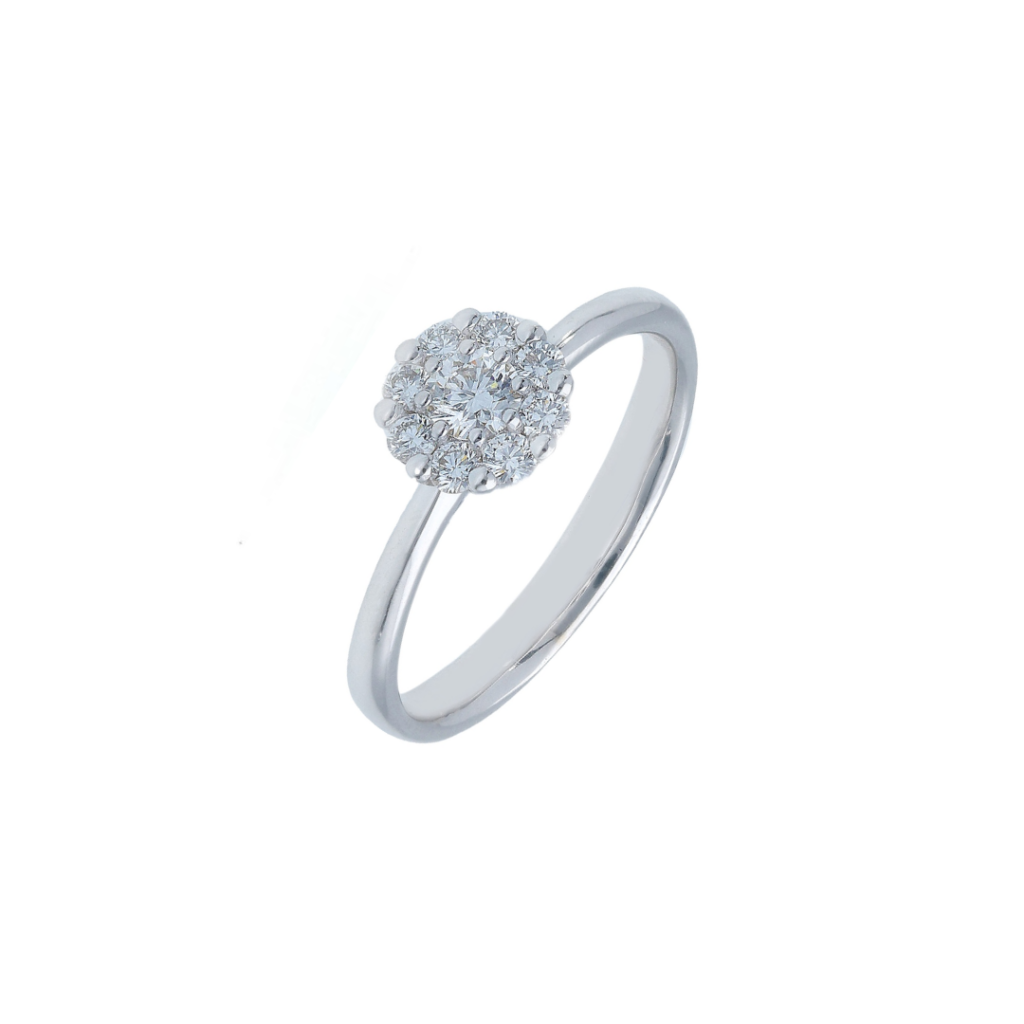 Rondom de centrale briljant zijn 8 kleinere briljanten gezet (0.18 ct – G – SI).