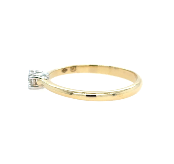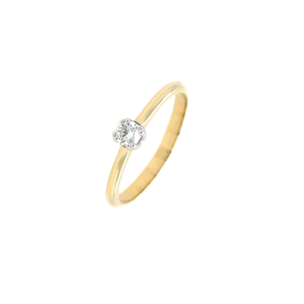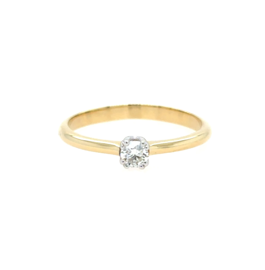 In het midden van de ring schittert een briljant van 0.12 ct die gezet is in acht witgouden griffen.